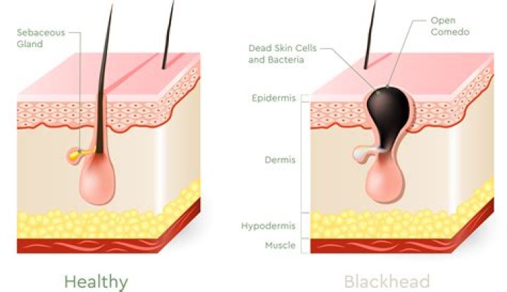 Blackheads form when a clog or plug develops in the opening of hair follicles in your skin. Each follicle contains one hair and a sebaceous gland that produces oil. This oil, called sebum, helps keep your skin soft. Dead skin cells and oils collect in the opening to the skin follicle, producing a bump called a comedo.