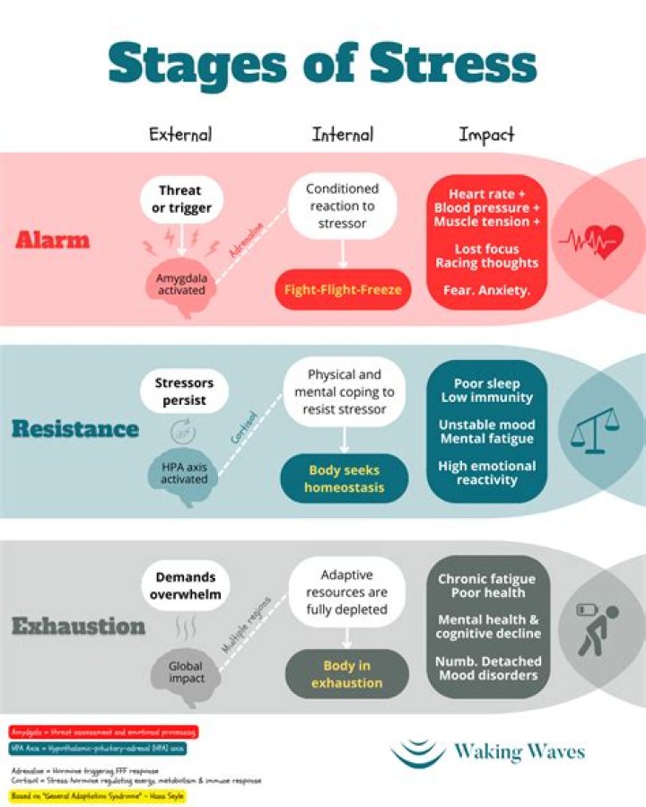 The 3 Stages of Stress Per the General Adaptation Syndrome. The three stages of stress comprise what is referred to as the General Adaptation Syndrome (GAS), first proposed by Hans Selye in 1936. GAS includes three phases: alarm, resistance, and exhaustion.What are the three stages of stress and how do they affect you?