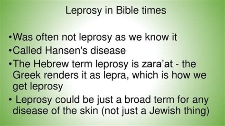 The early Israelites believed that illness was the punishment for sin and the particular heinous set of syndromes referred to tzaraat. Leprosy, then, was both a punishment for a sin (Lb. 12,10; 2 Krn. 26,19-21) and divine curse because it was a chronic and incurable disease until our times.Who gets leprosy in the Bible?