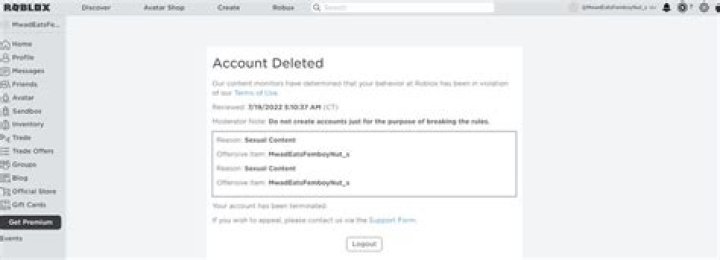 Why is my Roblox account deleted?