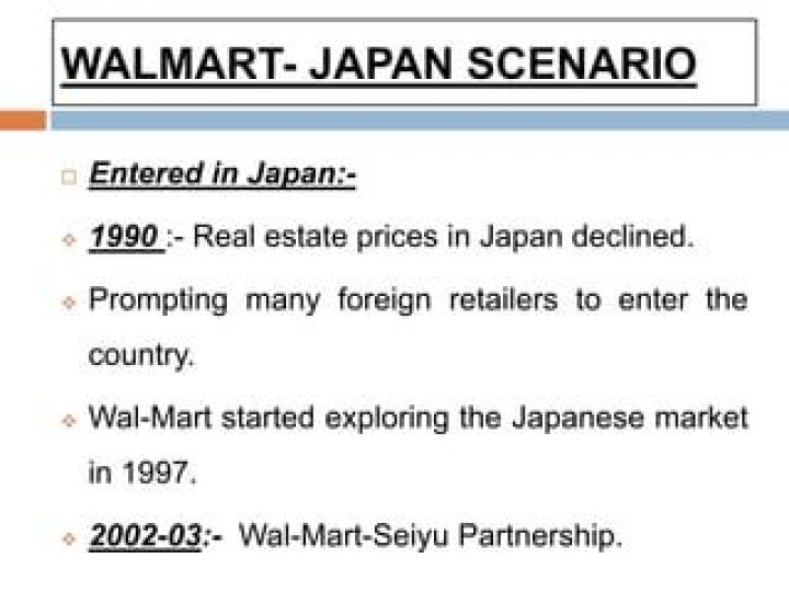 Walmart now aims to grow in China, India, South Africa and other emerging economies. The reason Walmart did not rid itself most of its Japanese business until now was partly because it has positioned the country as a steppingstone for pan-Asia aspirations. It also needed to save face.Is Walmart successful in Japan?